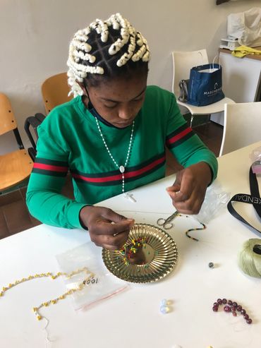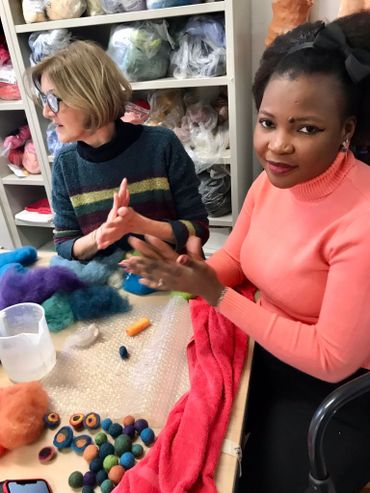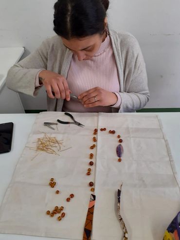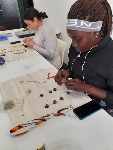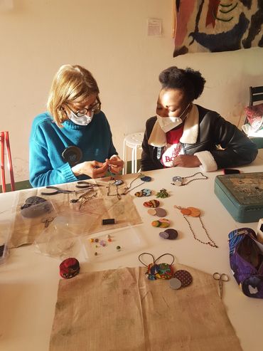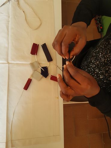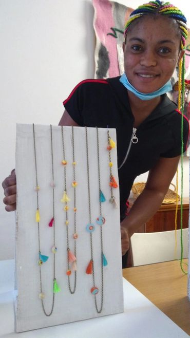 Dai ritagli di tessuto wax e dagli scarti delle lavorazioni in feltro vengono inventate e create collane, orecchini, bracciali, spille. Vengono sperimentati diversi materiali, tra cui anche la pasta polimero che permette di modellare medaglioni, perle e gioielli artistici.