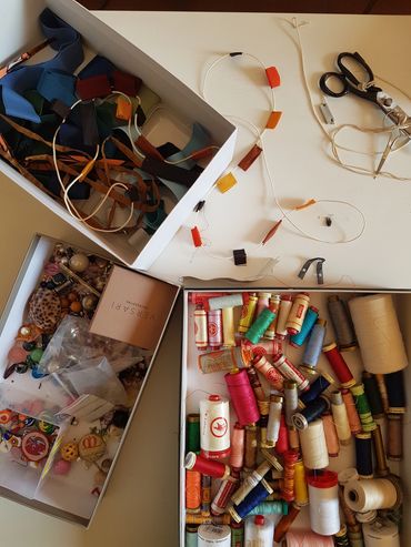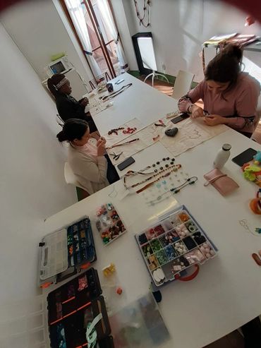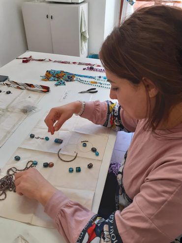 Il laboratorio di bijoux nasce dal riutilizzo e riciclo dei materiali utilizzati nelle creazioni di oggetti in feltro e di cucito.